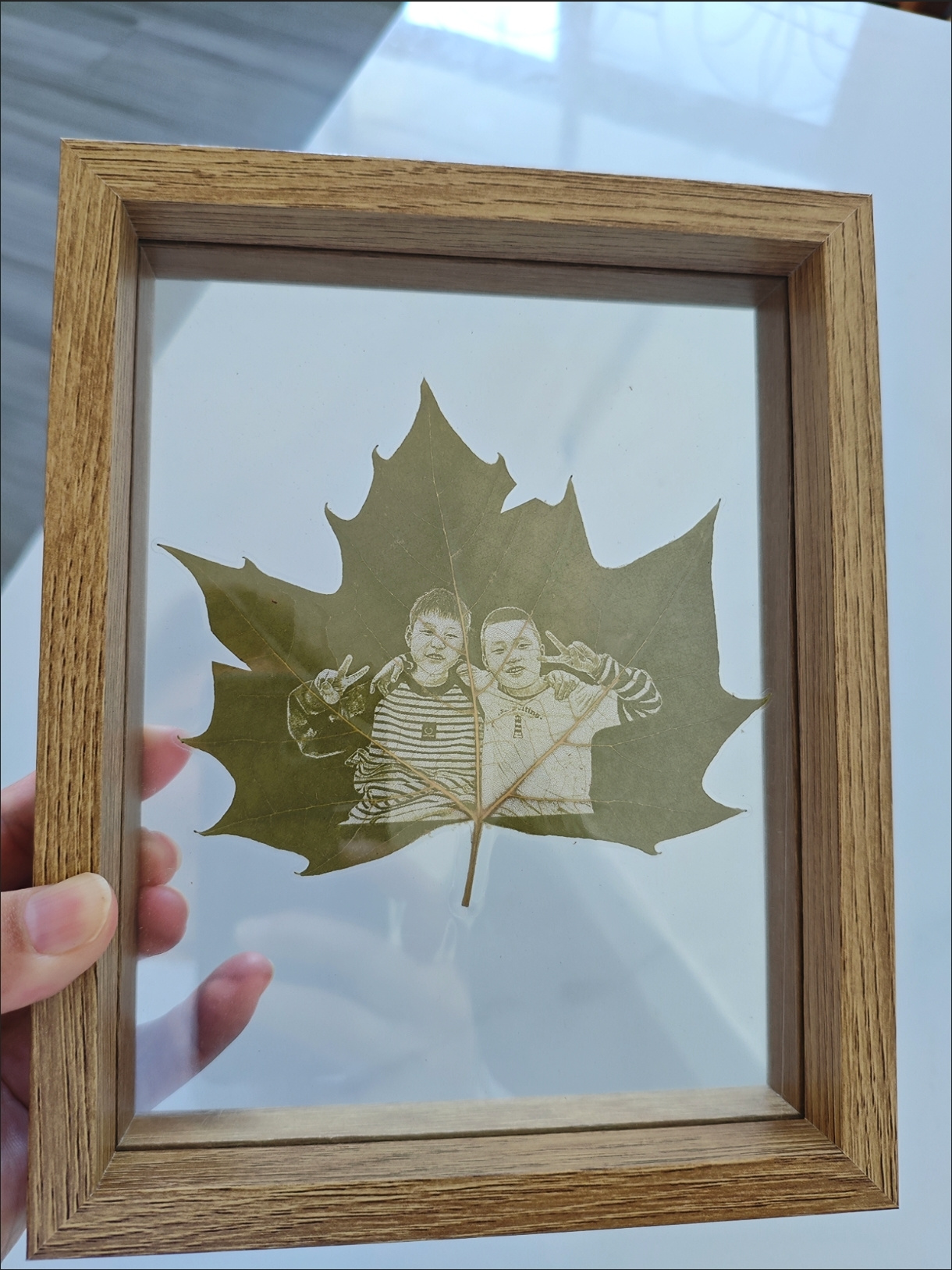 The production was quick, the price very reasonable, and the frame is sturdy. The leaf carving captured the original photo perfectly. I gifted it to a friend, and she was amazed and absolutely loved it.